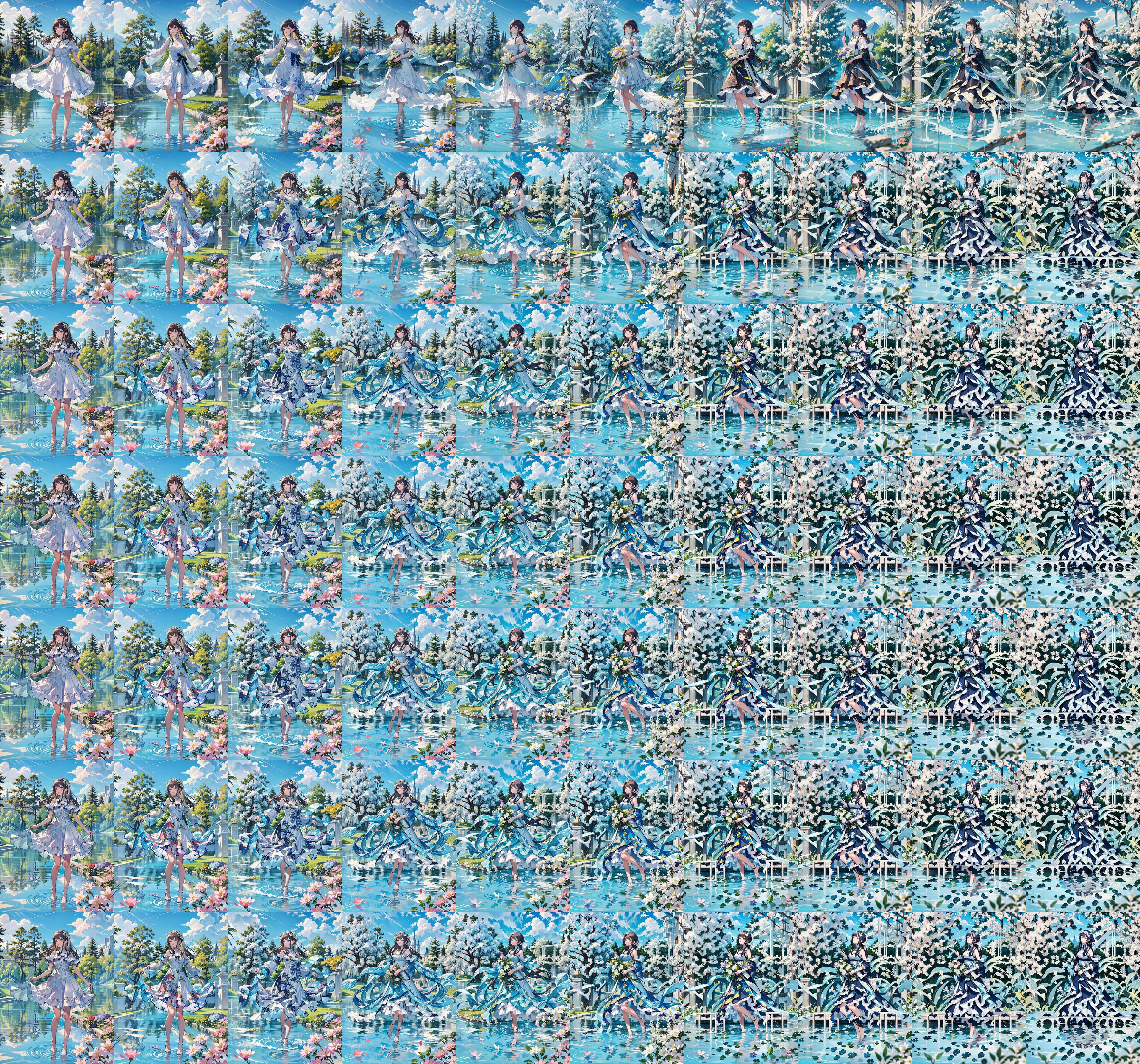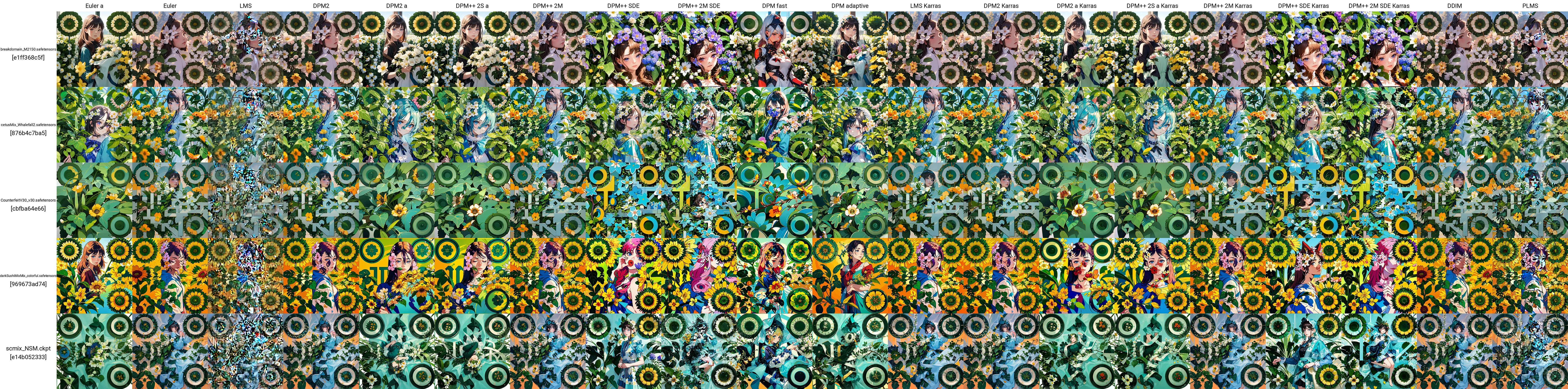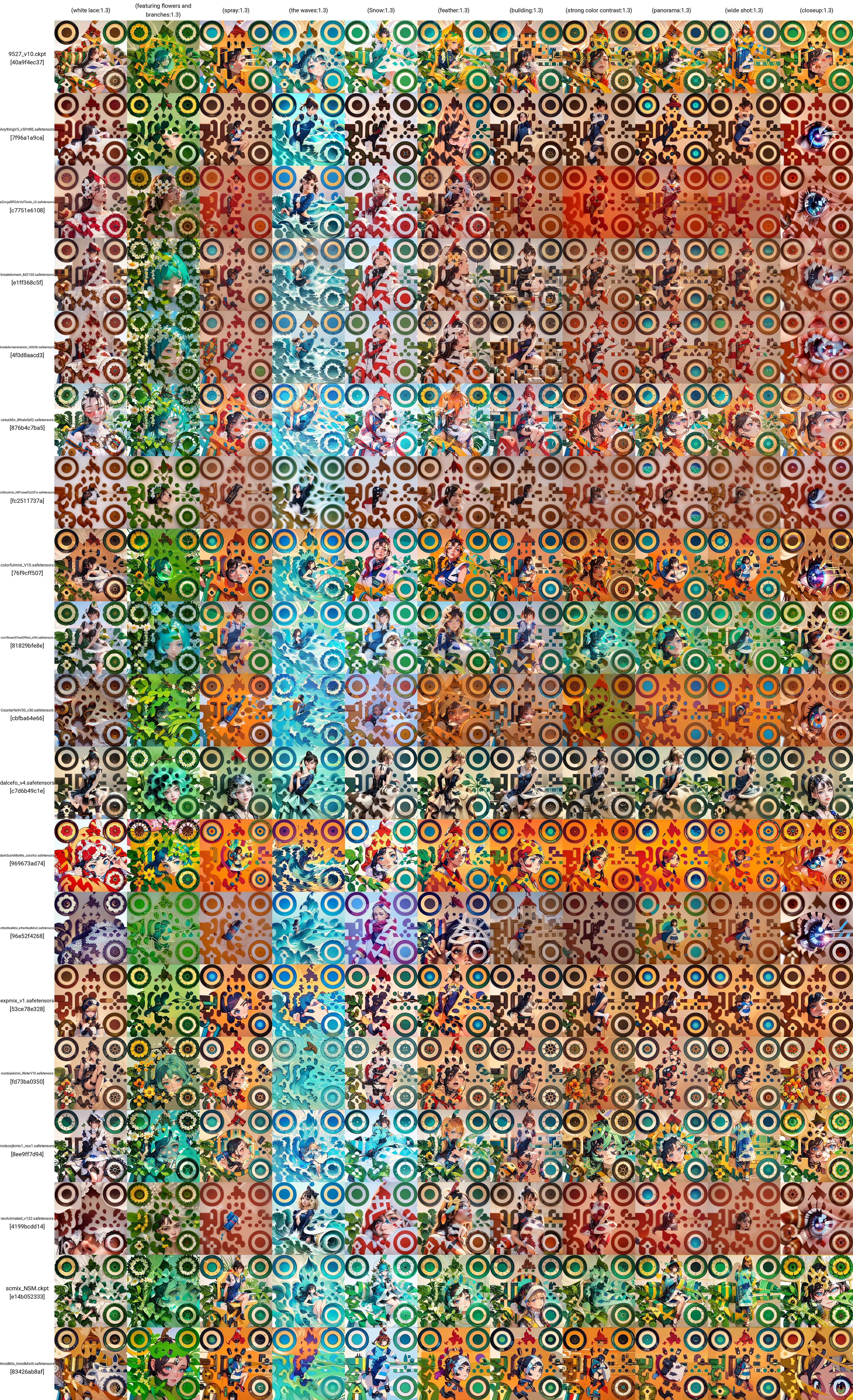 Below is an example of a matrix runned by wangcai, testing some popular checkpoint models and the prompts we mentioned above. You can click to select different combinations, or click the image to see the full matrix.