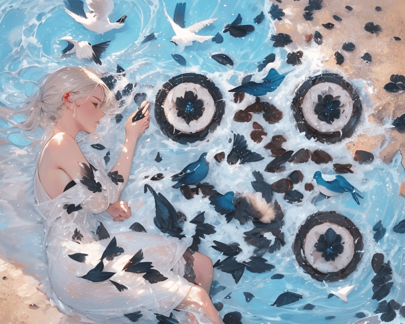 (1 girl:1.3), upper body, rosemaling patterns, Norwegian folk art, decorative designs, vibrant colors, (white birds:1.6), BREAK, (dark background:1.3)Wave - by 五倍速企鹅